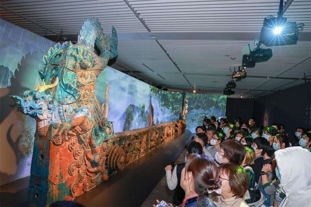展览通过“蔚为大观”“和光同尘”“壁上乾坤”“山河永存”四个部分展开叙事,汇集永乐宫150余件珍贵文物,囊括多个“首次”,包括首次展出披云真人宋德方石棺,首次完整拼合展出明代《五龙捧圣》壁画,更特别呈现了国家图书馆《太清风露经》与永乐宫《太上洞玄灵宝无量度人上品妙经》两件重要一级文物首次“同框”合展。